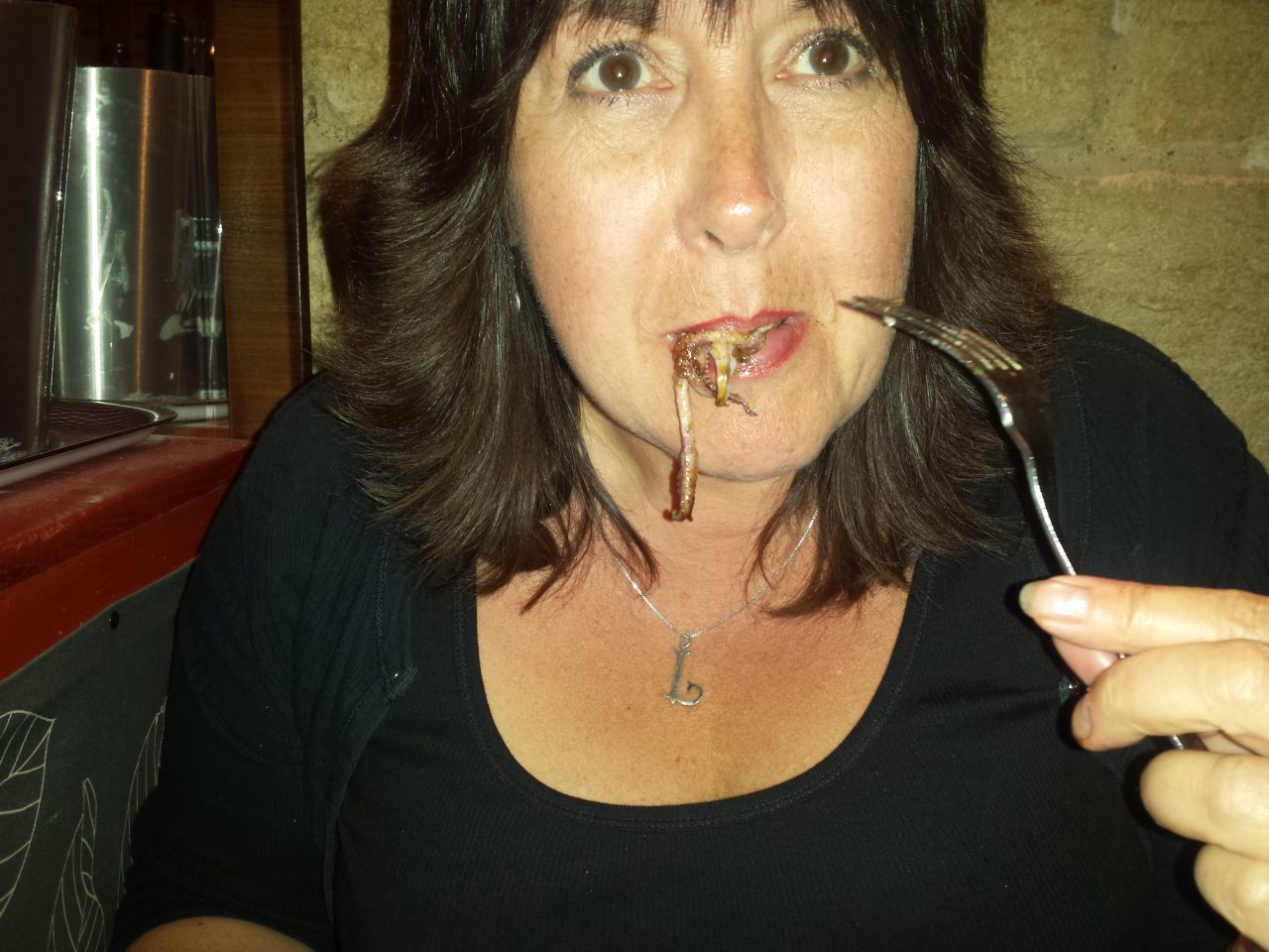 Julie eating Cuttlefish @Le Bouchon Bordelais