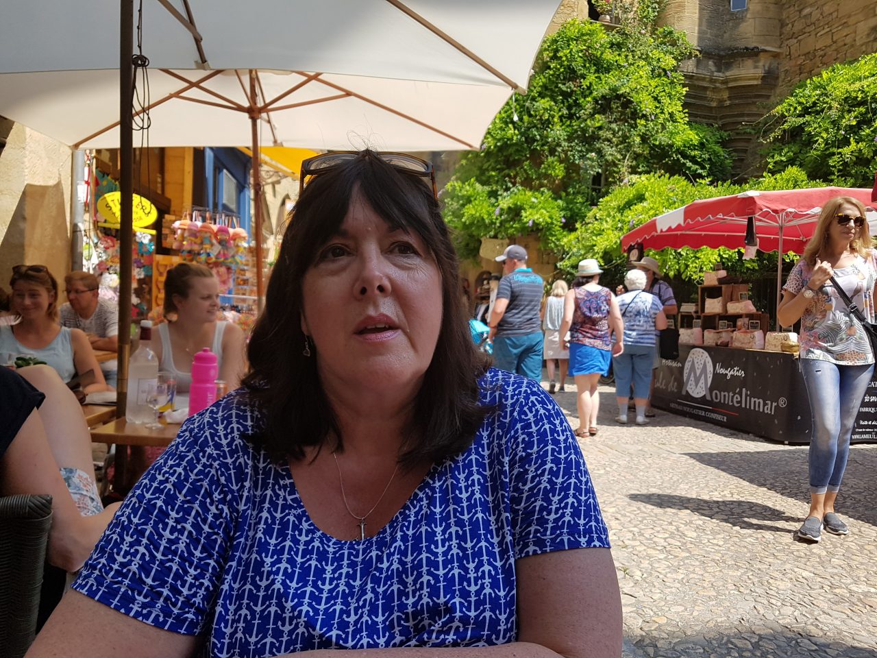 Julie keeping an eye out for dinner @Le Vieux Logis, Tremolat