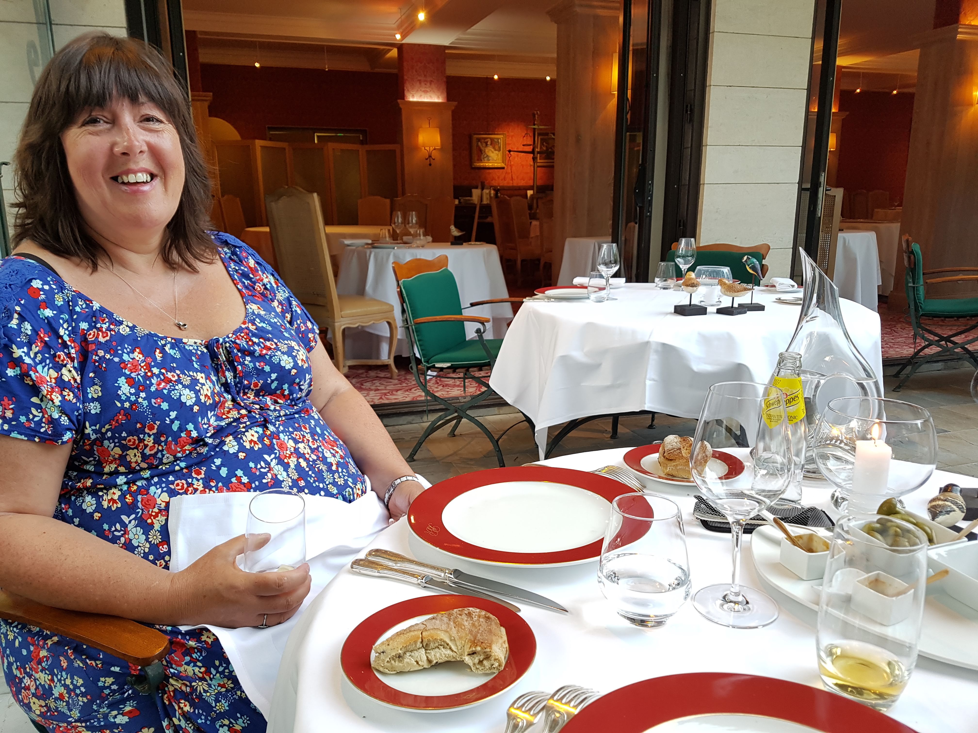 Julie happy that food is imminent at Domaine d’Auriac